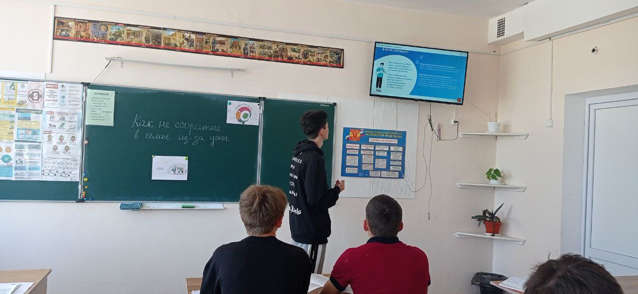 Учащиеся 11 класса в рамках проекта Финансовая грамотность прослушали лекцию "Как не ссориться из-за денег?", это лекция о правильном ведении семейного бюджета. Руководитель Саитасанова З.Р.