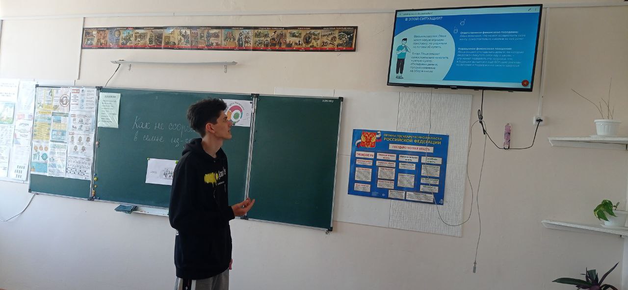 9 класс совместно с руководителем проекта Финансовая грамотность Саитасановой З.Р. просмотрели видеоролик, анонсирующий эстафету по финансовой грамотности в рамках Всероссийских эстафет "Мои финансы"